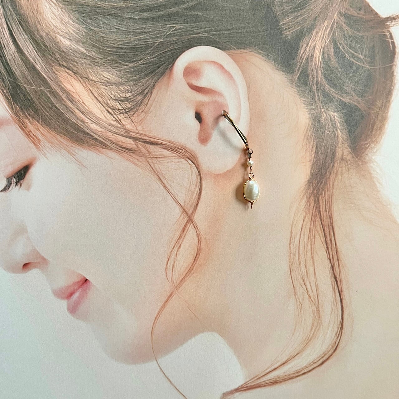 存在感抜群の10㎜淡水パールを使用した〈大きめ淡水パールイヤーカフ〉は、イヤリングやピアス代わりに付けるのもおすすめです!